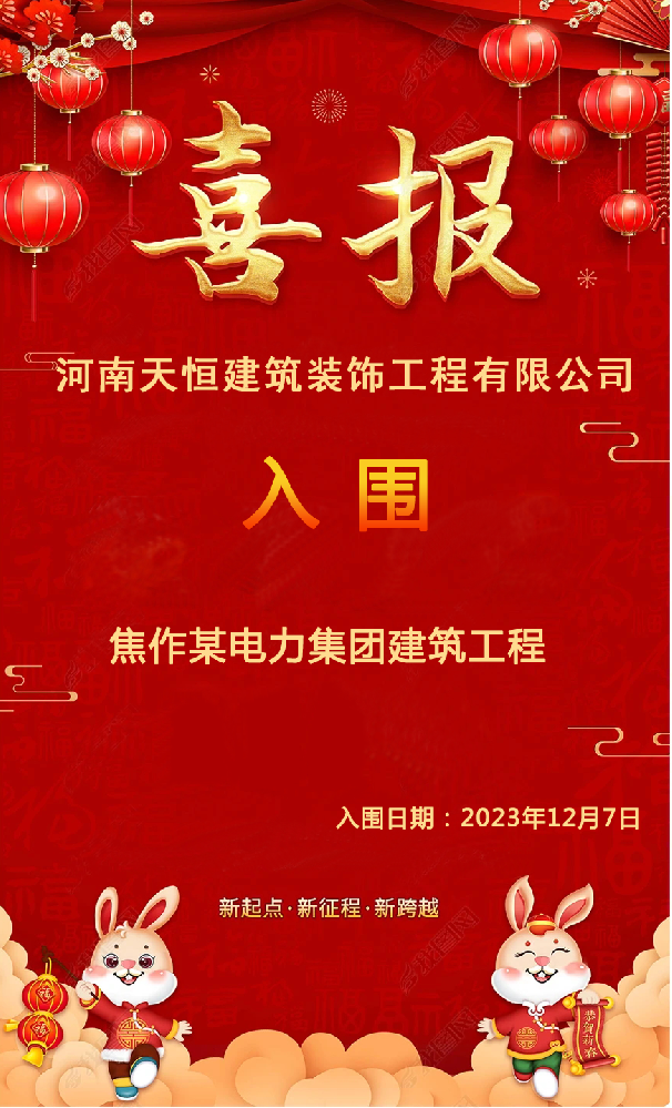 祝賀河南天恒裝飾公司入圍焦作某電力集團