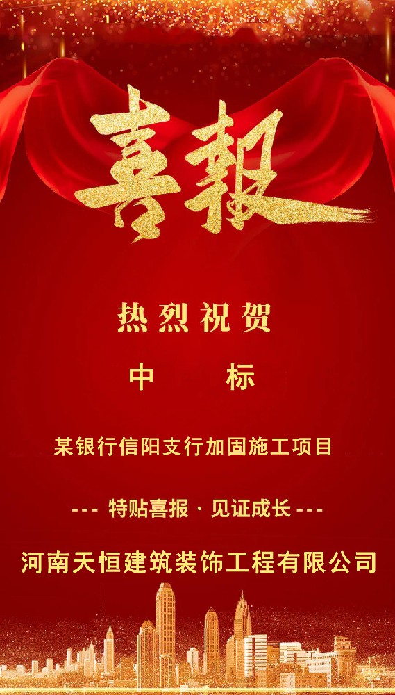祝賀我司中標中國銀行鄭州某支行裝修施工項目