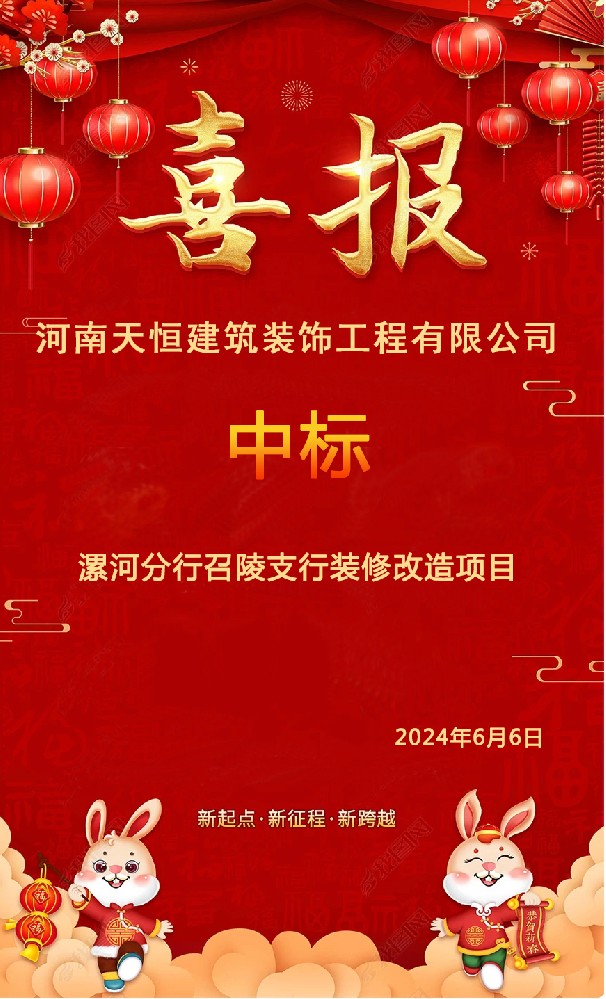 祝賀我公司中標漯河分行召陵支行裝修改造項目